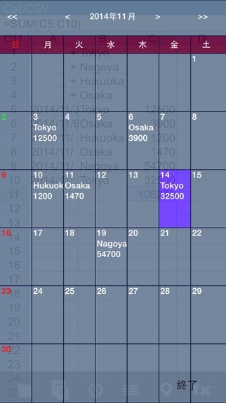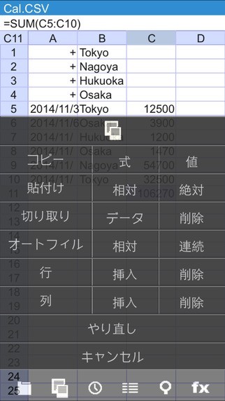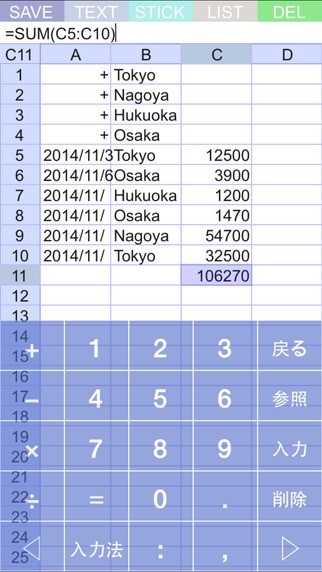 ちょっとした計算が必要になった時にわざわざパソコンを立ち上げて表計算ソフトを起動して計算する時や表計算をしたいのだけどパソコンが使用できない場合でも『セルロイドLITE』なら時や場所を選ぶことなく表計算ができます。 IPhoneで本格的な表計算ができて関数も50種類以上用意されていて説明文もついているので安心して使用することができます。 CSV入出力ができるので外出の最中にこのアプリで入力して会社に帰ってからパソコンにデータを移して作業することができます
