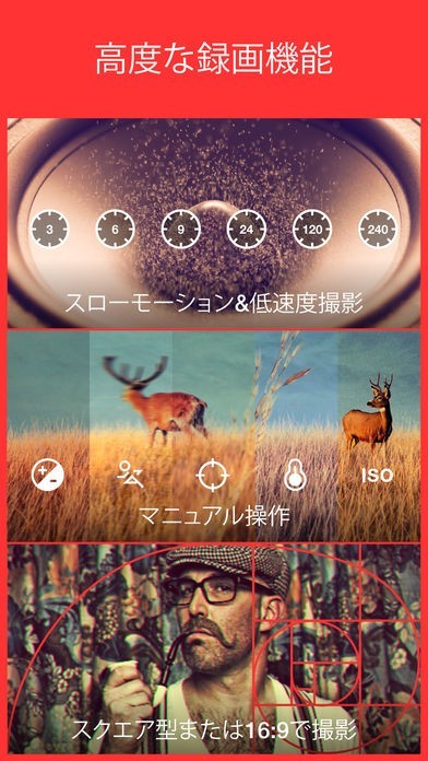 このアプリにはスローモーション撮影や低速度撮影などさまざまな撮影モードがあるため、完成度の高い動画を作成することができます。初心者でも上級者のような動画を作成することが可能です。