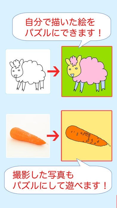 そして、世界で唯一!?自分で書いた絵が四色問題になる「つくる」モードもパワーアップ!今度は、写真からもパズルが作れるようになりました!