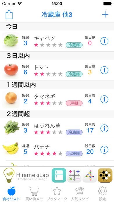冷蔵庫にある食材を消費期限付きで表示してくれるので順番に使っていける