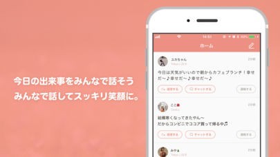 キーワードで特定のユーザーが検索出来るようになっています。さらに好きな相手とトークで盛り上がる事が可能で、HOME画面から利用者の近況が覗けるのも面白い点です。