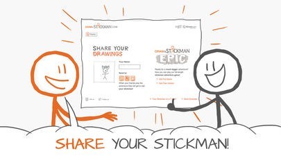 Don’t forget to share your Stickman with your friends via Facebook, Twitter, and email! Your stickman will accompany your friends