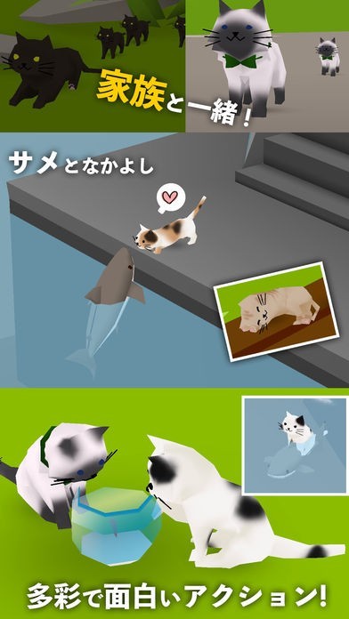 魅力的な庭を作り上げるといろんな猫が集まって来ます。40種類以上もの猫達とサメのお友達がかわいいアクションを繰り広げます。