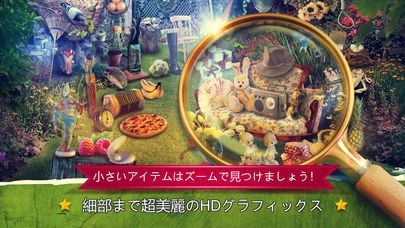 App Storeより引用謎の庭へようこそ!あなたが隠れたオブジェクトミステリーゲームを楽しむなら、あなたは正しい場所にいます!アイテム検索ゲームは、あなたの集中力、集中力、細部に気づく能力に適しています!神秘的な庭の絵の中のオブジェクトを見つけて、謎の事件を解決してください!隠された物のゲームの写真の困惑を解決することによって本当の謎の探求に行くゲーム隠されたオブジェクトミステリーガーデン!最高のミステリーゲームは隠されたオブジェクトの写真の謎を解くのを待っています!これらのミステリーパズルをダウンロードして、今日遊んでみましょう!我々は最高の隠されたオブジェクトのゲームで楽しく、エンターテイメントの時間を保証します!