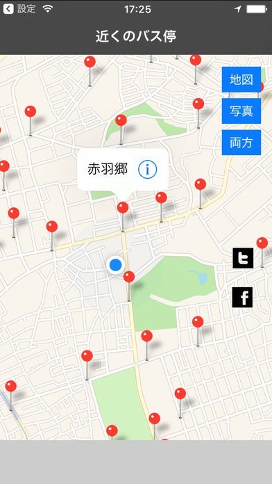 App Storeより引用現在地から近くのバス停を簡単に見つけることができます。