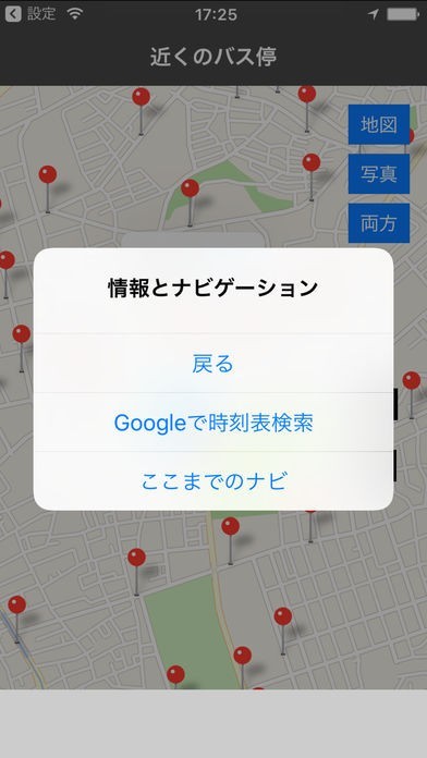 仕事での出先や旅行先で近くのバス停が簡単にわかります。