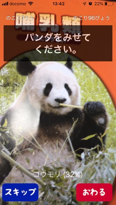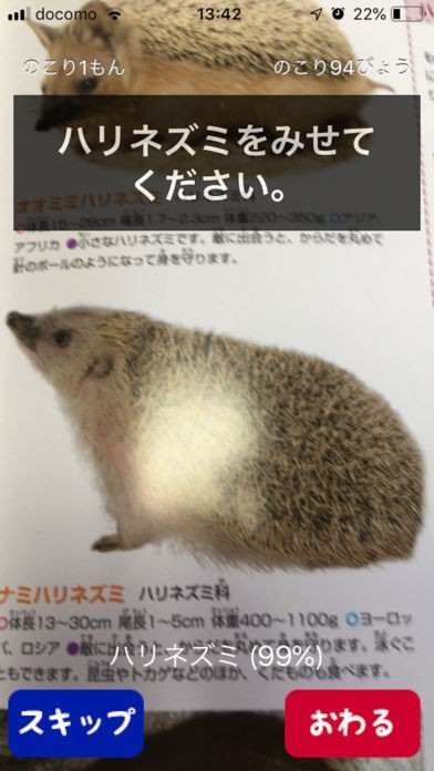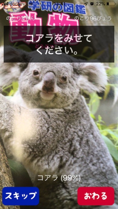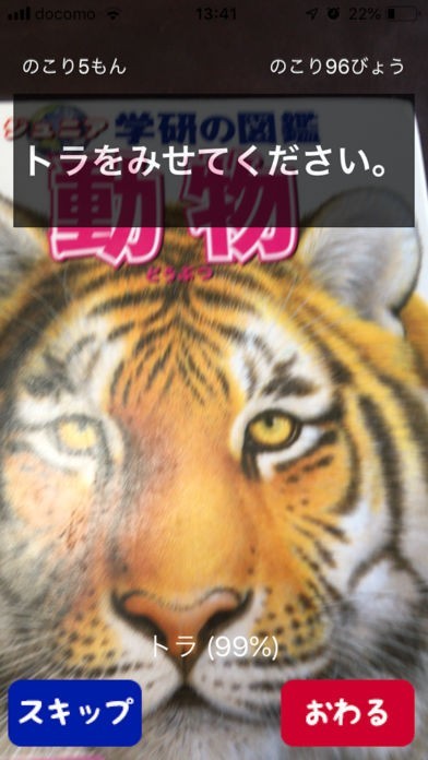 ■ずかんゲーム:クイズです。出題された動物をカメラに映してください。
