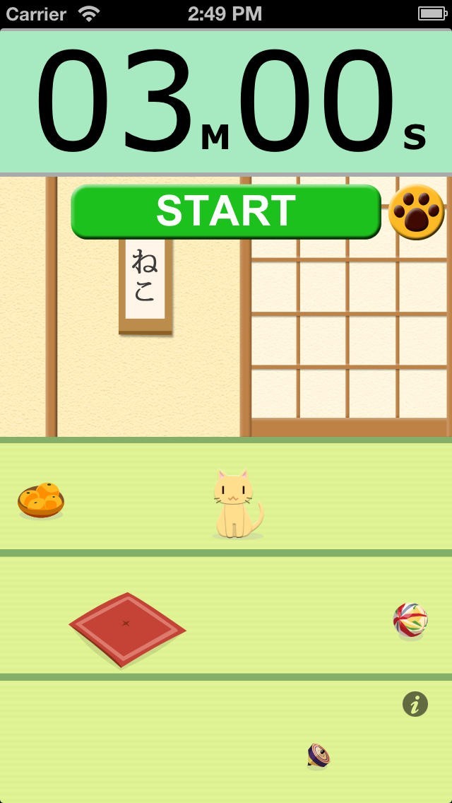 タイマーを開始すると猫が動き回ります。