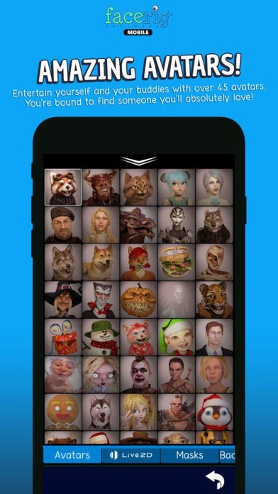 「FaceRig」は、あなたの顔の細かな動きを認識して、自動でリアルタイムにアバターに同じ動きを再現してくれる画期的なアプリです。撮影した映像は、簡単にSNSなどに投稿することができるので、話題作りにピッタリのエンターテイメントツールです。