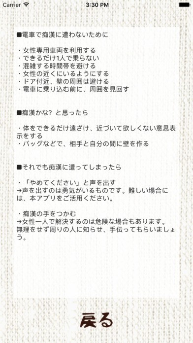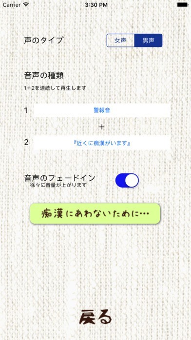 フェイドイン機能、男声・女声選択、痴漢に遭わないための豆知識