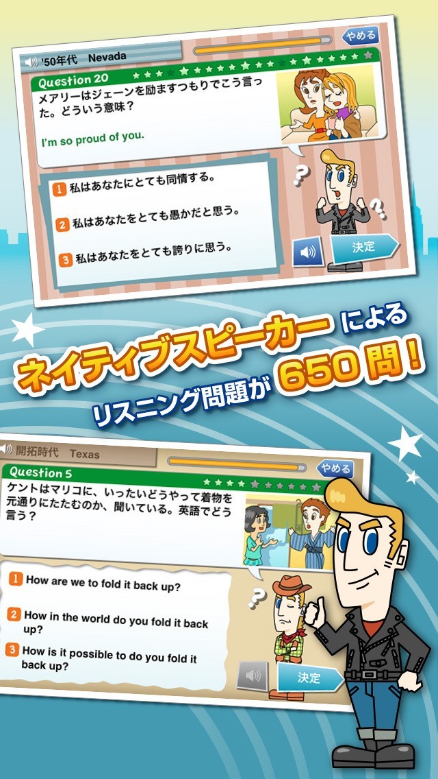 App Storeより引用ネイティブが日常的によく使う実践的な英会話が、ゲーム感覚で楽しく学べます。