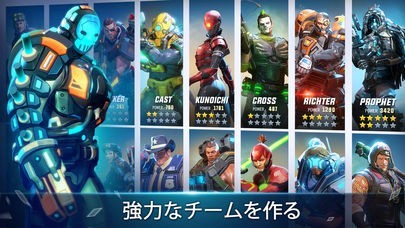 50人以上いるヒーローの中から好きな5人を選んでチームを結成します。バトルではリアルタイムで操作するヒーローを切り替えることができるので、様々なヒーローを操れます。