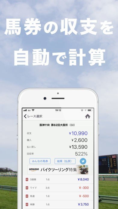 馬券の買い目の登録するだけで、収支はアプリが勝手に計算してくれる!