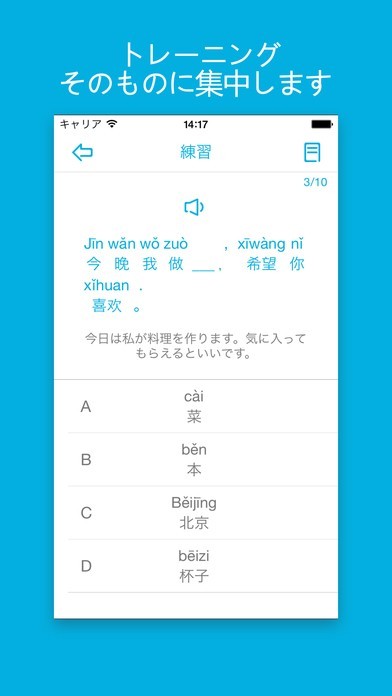 「中国語/共通語を学ぶーHello Words」はスマートフォンで完全無料で中国語を学ぶことが可能で数十万人の登録者数を誇る人気学習アプリとなっています。HSK大綱語彙、ビジネス中国語語彙、日常中国語語彙の三つのカテゴリーから収録されているので自分が学びたいカテゴリーに合わせて学習を進めることが出来ます。単語の勉強では意味や用例を閲覧することができるだけでなく、ネイティブスピーカーによる発音を聞いて自然なアクセントを身につけることが可能になっています。