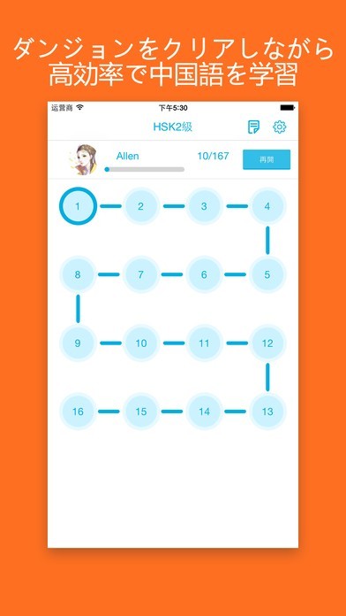 HSK2級の中国語ボキャブラリーの強化に特化した、ネイティブスピーカーによる発音音声でリスニングも鍛えられ、記憶チェックテストで学習効果の確認もできる無料の単語帳アプリです。習得が簡単な初級編から1つずつテストをクリアして初めて、次のレベルの課題に挑戦できるようになっているので、ゲーム感覚で学習を進めることができるのに加え、単語ごとに発音や日本語翻訳を確認できる例文が収録されており、用例も学ぶことができます。またお気に入りに入れた単語はオリジナル単語帳にリストされるため、重点的に学習するのに便利です。
