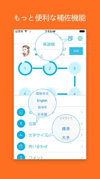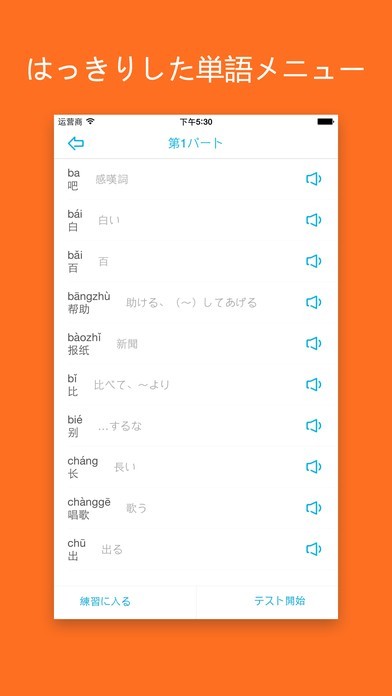 シンプルでわかりやすい操作性で、効率よく中国語ボキャブラリーを強化できます。音声付きなのでリスニング力アップにも有効!
