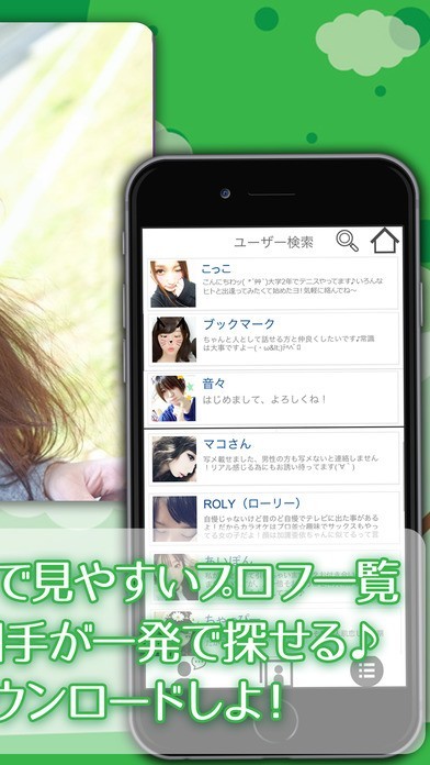 メルアドや電話番号などの個人情報を入れる必要がないので、安心して使うことができます。プロフィールの一覧から、自分とマッチしそうな人や好みの人を探すことができます。