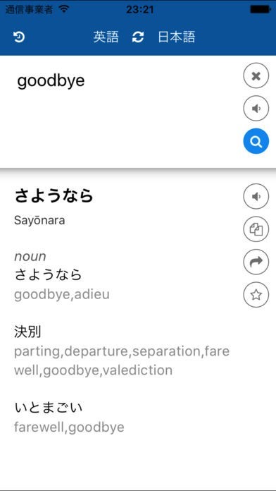 日本語英語翻訳のスクリーンショット