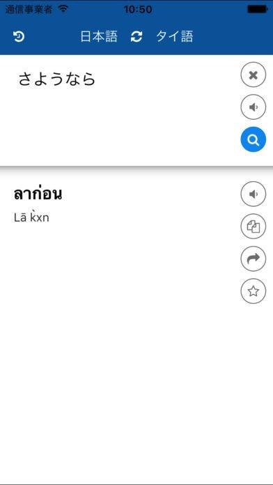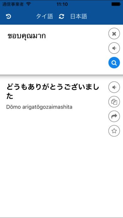 タイ語をネイティブスピーカーによる発音で聞くこともできるようになっているので、単語を翻訳するだけでなく、正しいタイ語の発音を身につけることが可能となっています。