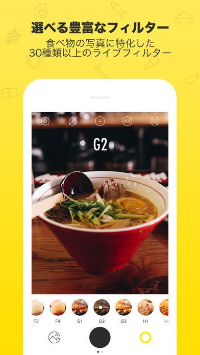 √食べ物の写真に特化した30種類以上のライブフィルター