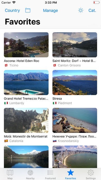 無数のウェブカメラも、山や海岸、リゾート地といったカテゴリーでフィルタリングできるので、気になるスポットもすぐ見つかります。人気やアクセス数でソートすることもでき、話題のスポットを探したいときに便利です。今いる場所の近くにあるウェブカメラをリストアップして、隠れた人気スポットを訪れるのにも役立ちます。