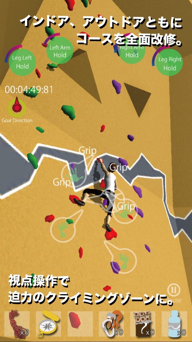・視点を動かせるようにして、いろいろな角度からホールドを探せるようにしました。