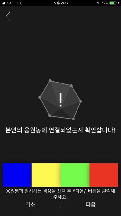 어플리케이션과 연결된 응원봉의 배터리 잔량을 체크합니다.
