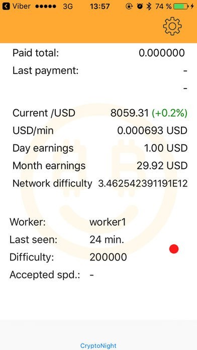 Find and enter you API ID and API key into app settings, also enter your Bitcoin wallet address. Select your workers' algo from the bottom menu - and watch them working online!