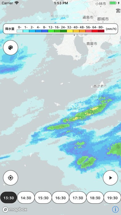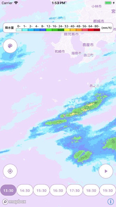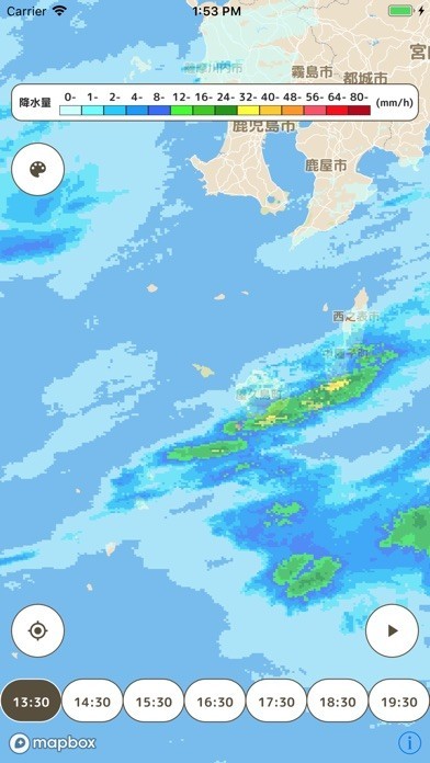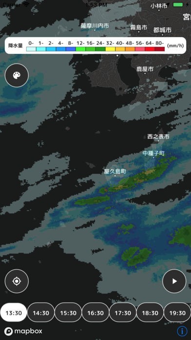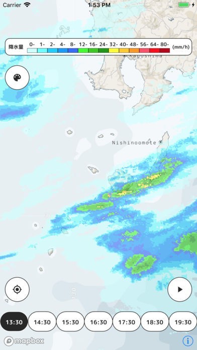 雨雲レーダーの地図を5種類から選べるので、自分の好みに合ったデザインの地図が見つけられると思います。