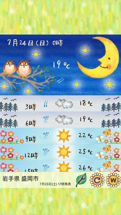 イラストが可愛いので毎日使いたくなる見た目です。誰かに覗き込まれてもおしゃれな女子を演出できます。天気の悪い日でもテンションが下がらずに済み、お出かけ前の天気確認にも最適なアプリです。