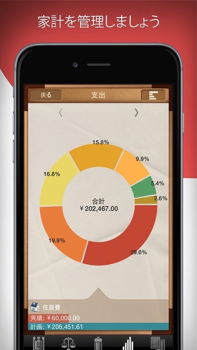 「Moneyでマネー管理」は名前はシンプルながら機能性にすぐれた家計簿アプリです。カレンダー表示のため、日々の収入や支出がわかりやすく、それぞれの内訳もアイコン表示されているため、タッチ操作で記録しやすいアプリです。アイコンにはたくさんの種類があり、外貨やクレジットカード、ウォレットなど必要なアイコンは簡単に追加することができます。所持しているお金は資産、現金、残高、負債などに分けることができ、細かな管理が可能です。また、予算管理についても計画と実績に分けて管理できるため、上級者向けの家計簿アプリとして活用できます。