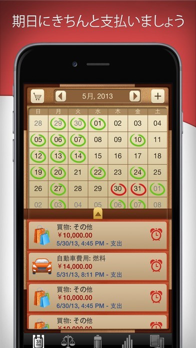 名前はシンプルながら高機能な家計簿アプリ。カレンダー表示とアイコン表示で使いやすい。!