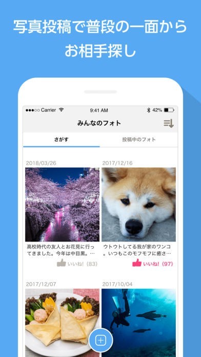 プロフィールに使う写真は5枚まで投稿できるので、本人写真だけでなく趣味や好きなものの写真を投稿します。自分自身をアピールしやすく、異性からいいねをもらったり、いいねを送ることも可能です。お互いの気持ちをいいねで伝えることでわかりあえます。