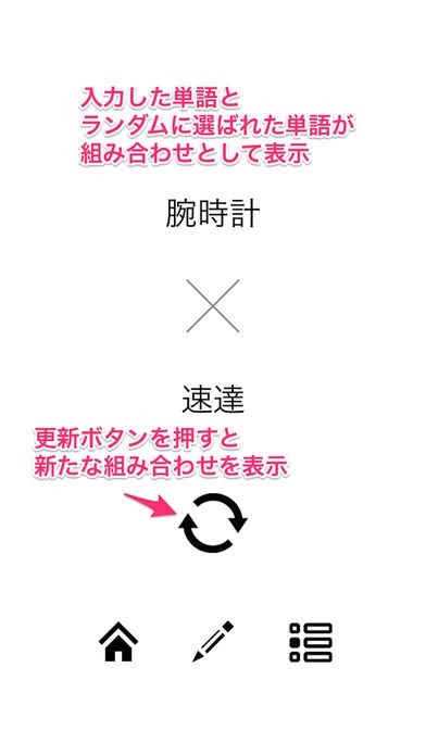 ランダムに選ばれた単語が組み合わせとして表示されます。