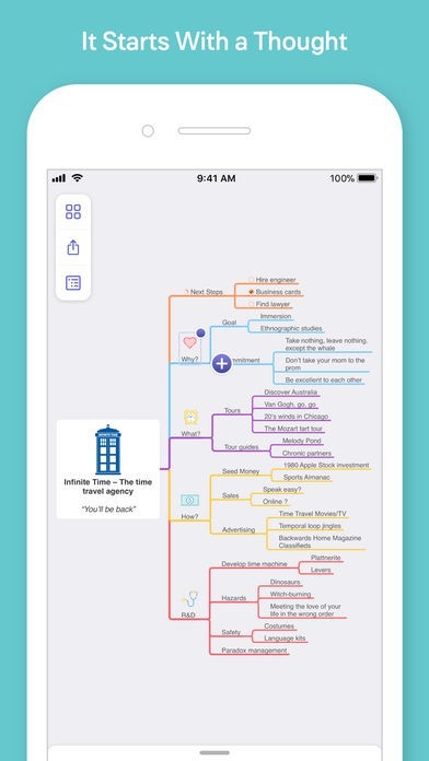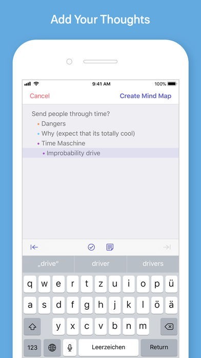 Whether it's your iPhone when on the go, your iPad or Mac at work, or your Apple Watch during a workout, with MindNode you stay productive wherever you are. Deep system integration lets you store your files in iCloud Drive and access them on all your devices. MindNode for macOS sold separately.
