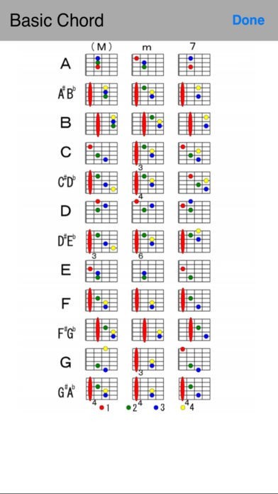基本的なコード表を画面に表示することができます。ギターの勉強になります。