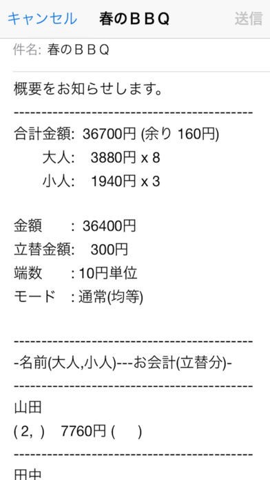 例えばイベントに参加した家庭のうち3人家族と5人家族とでは支払額が同じでは不公平を感じてしまいます。そこで、人数に応じて公平な額になるように計算することができるのです。