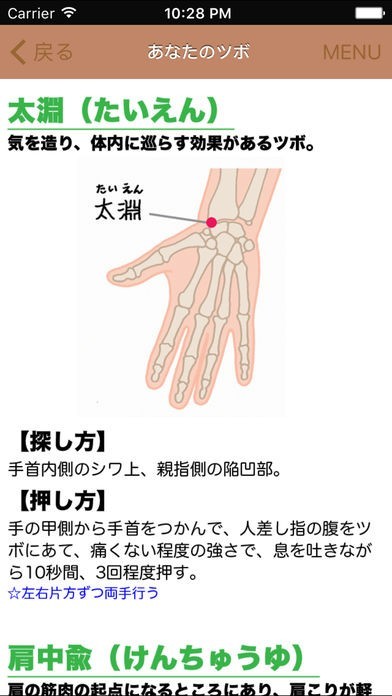 体質に合ったツボは、図解で解説機能付きなので押しやすい
