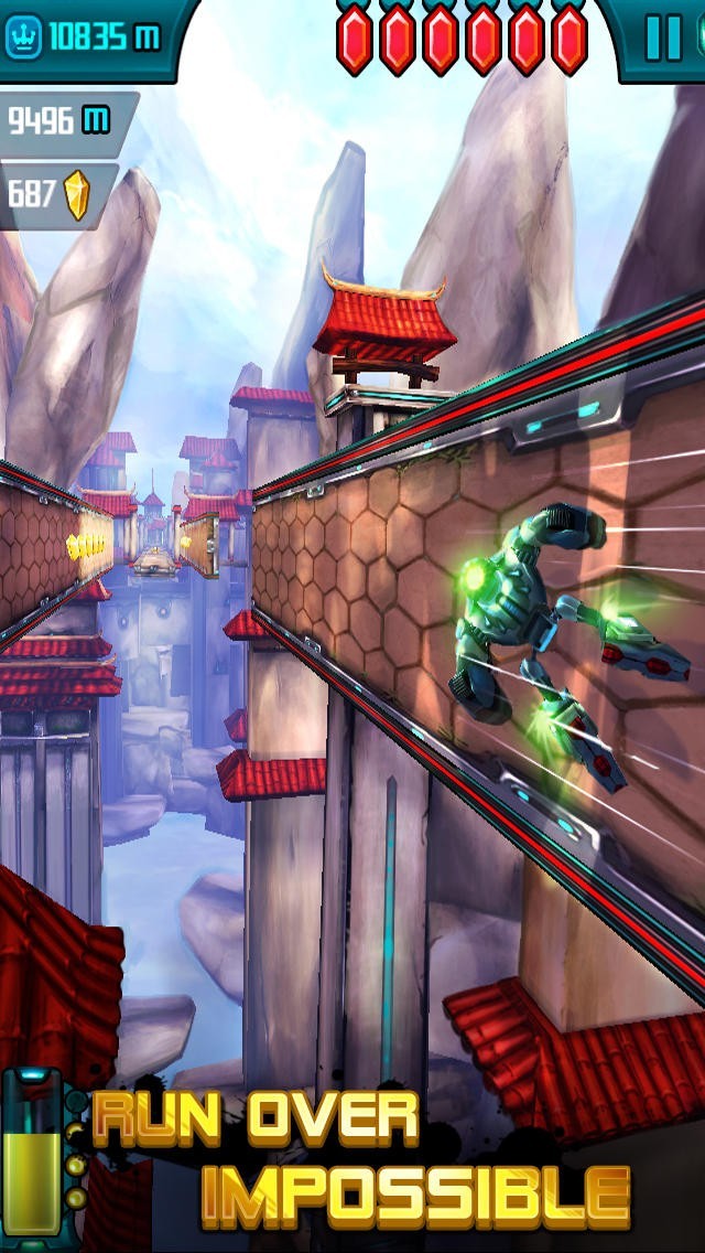 自動走行していくキャラを操作して障害物等を避けていくゲームですが、このジャンルのゲームには珍しく、傾きやワイプ操作といった豊富な操作も取り入れており、プレイしていて飽きにくい作りになっています。