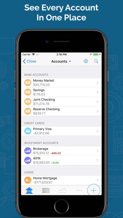 Banktivity for iPhone gathers all your accounts in a single app with a clear, unified interface. New transaction entry is a breeze, with location-based vendor lookup and autofill based on your history. Check balances, add transactions as they occur, categorize expenses and review or edit your portfolio. And with an optional subscription to Direct Access*, your accounts update automatically.
