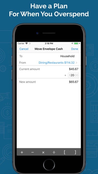Quickly check how much money you have in envelopes and move money between envelopes to keep your budget on track.