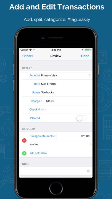 By monitoring your spending daily and seeing where to economize and save, Banktivity for iPhone gives you the power to build better money habits and increase your cash cushion. You can perform detailed finance management: create, edit or delete transactions, categorize them, or mark them as cleared. You’ll always know where you stand!
