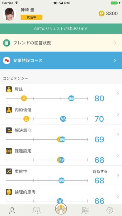 コンピテンシーのポイントがたまり、自分の強みを知ることができます。