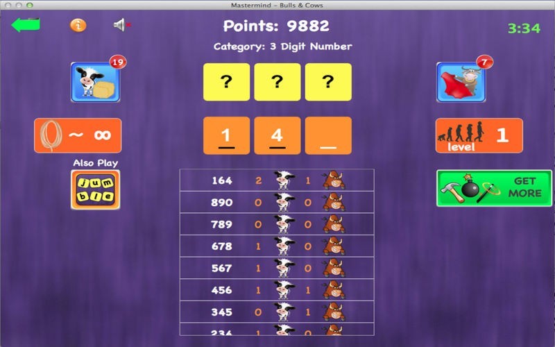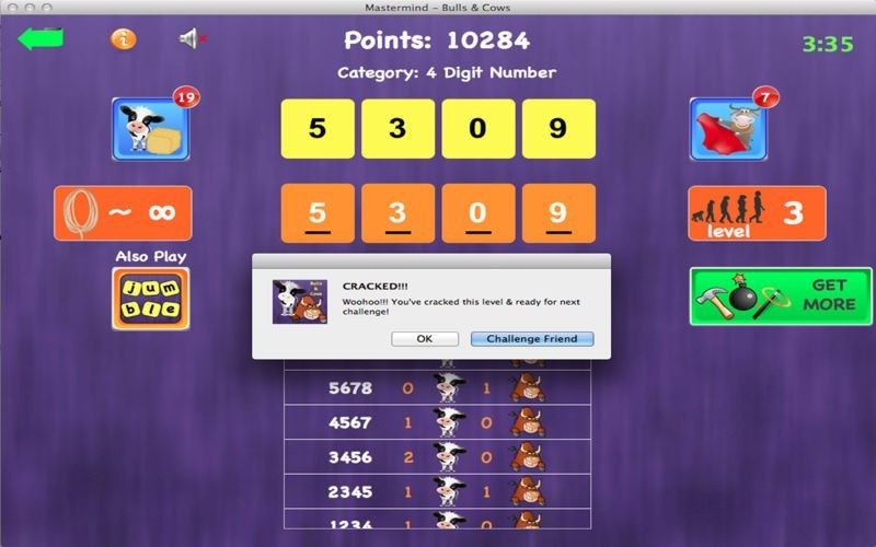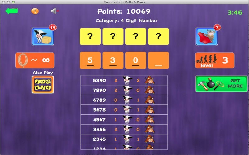 App Storeより引用心は、App Storeで首謀者/牛や雄牛の単語ゲームを壊す。 50レベルに分類6桁の数字 - 3で遊ぶ。