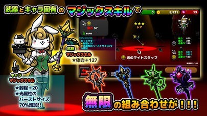 「ぼくとネコ」の痛快ノンストップバトルを誰でもすぐに始められます。キャラの育成と装備する武器の選択も全然難しく考える必要ありません。直感的に選択してもOKなくらい間口の広いゲームです。