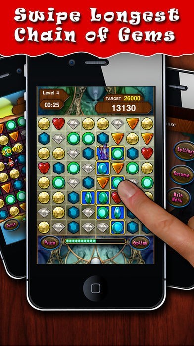 類似の宝石の最も長いチェーンをスワイプしてできるパズルゲーム