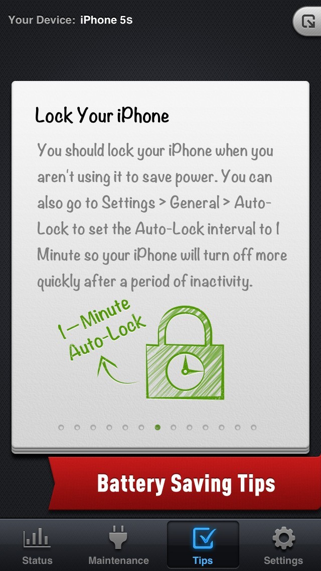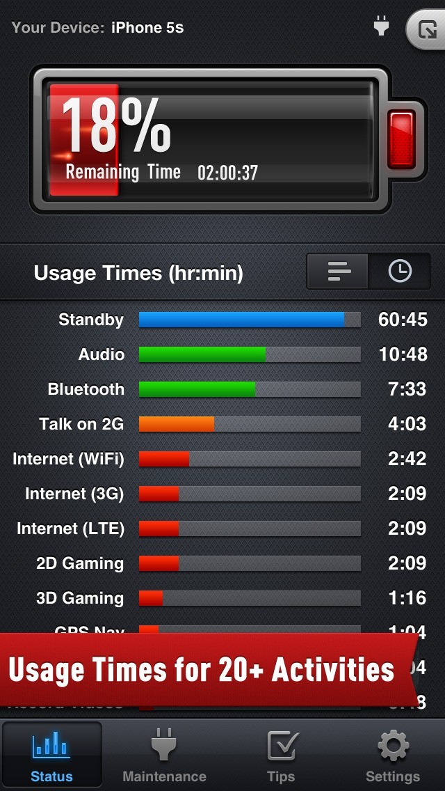 あなたのiPhoneの電池持ちはあまり良くありませんか?月に一度電池ブースターによるフルサイクル充電を続け、また電池ブースターにあるヒント集の内容を厳密に実施すれば、電池の持ち時間を最大限に保てます。さらに、電池ブースターはその時のバッテリー状況での通話、ゲーム遊び、またはネットブラウジング残時間も表せます。この情報が分かれば、後で重要な通話時間を残す為にはどのぐらいゲームで遊んでも大丈夫かとのバランスが図れます!