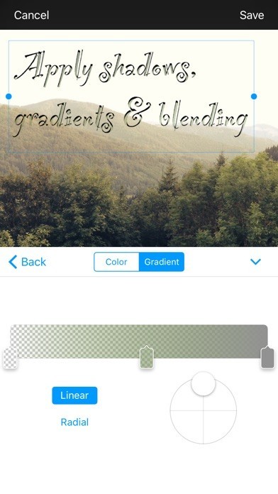 App Storeより引用Add a message to your photo, and make it look beautiful with powerful styling options provided by Type.