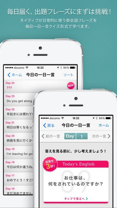 配信されたフレーズは、すべてアプリの中に残っていくので、その日だけではなく、空いた時間を使って繰り返し復習するように習慣づければ、しっかり記憶にとどめることができます。