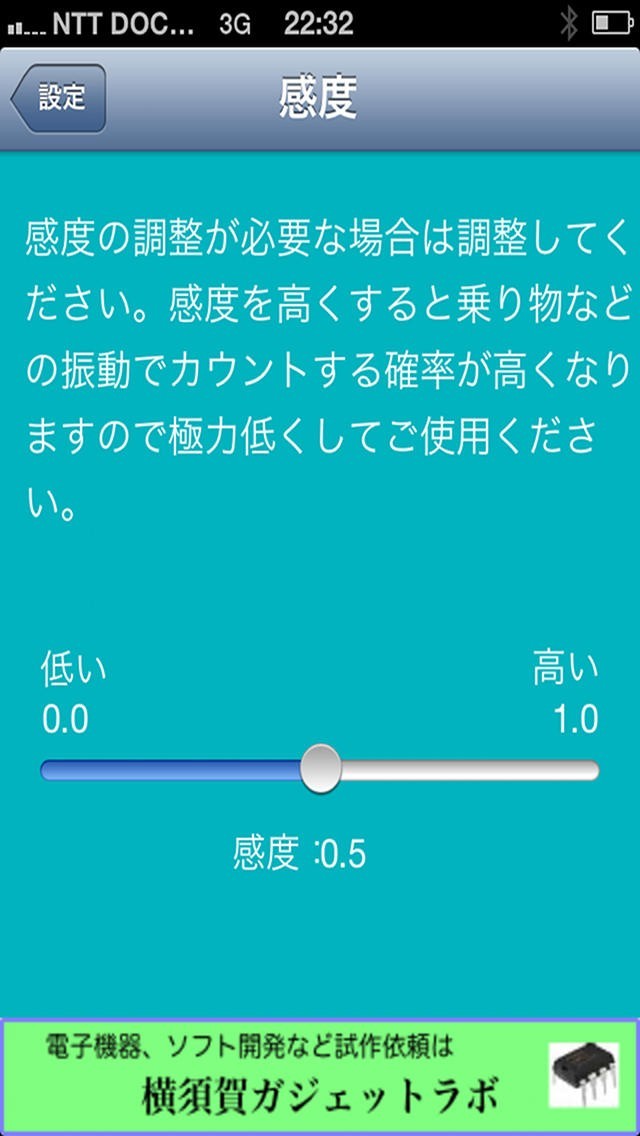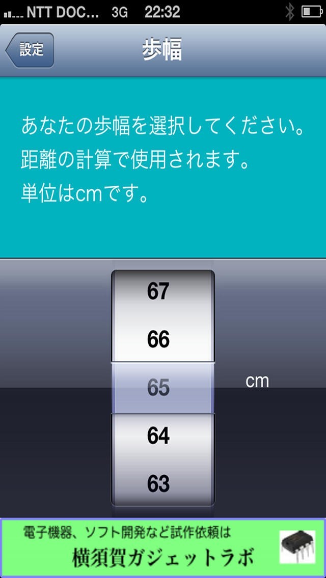 自分の正確な歩幅をセンチ単位で設定してアプリに登録することが出来るようになっているので、一歩当たりの歩幅を自動計算してより正確な歩数をカウントすることが可能となっています。